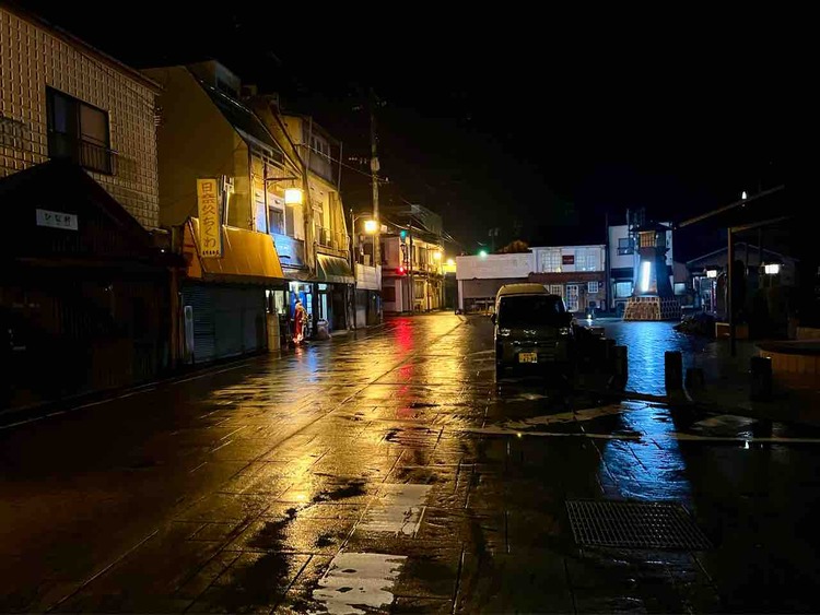 日奈久温泉、土曜の19時。 そろそろ晩御飯がてら飲みに行きたいと思います。 外に出ると真っ暗で不安になるけど、お宿のご主人に営業してるお店をい···